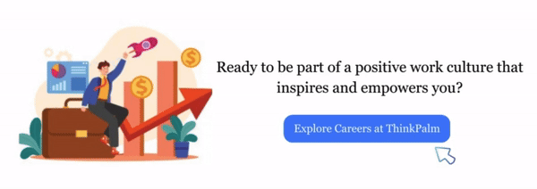 At ThinkPalm, we believe a positive work culture is the cornerstone for creating dreams and achieving greater success. We cultivate a positive work culture that is filled with kindness, empathy, and trust. Also, ThinkPalm is a great place to work which nourishes an environment that fosters creativity, innovation, and happiness.