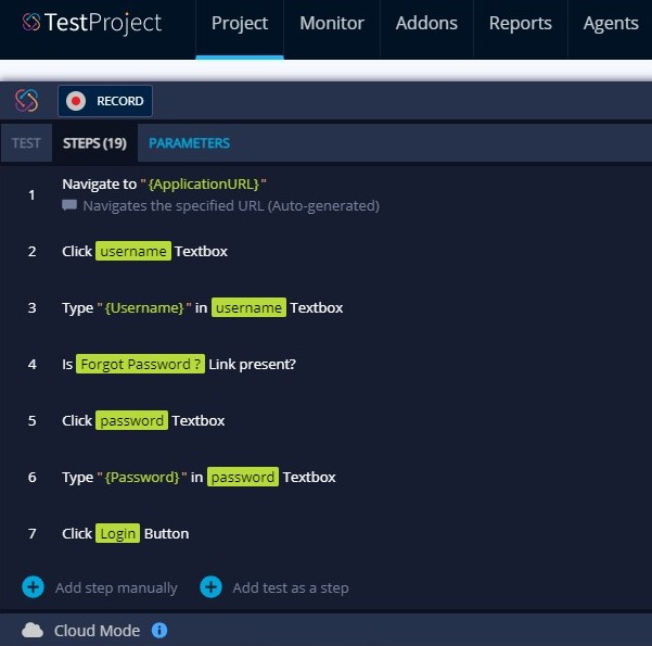 This feature helps in creating, editing, and organizing your tests. On each step, you can select elements, add comments, create parameters, perform certain actions, define failure behavior, add wait times, take screenshots and do much more. You can change the order of steps, insert steps in between, add or delete steps, and much more.