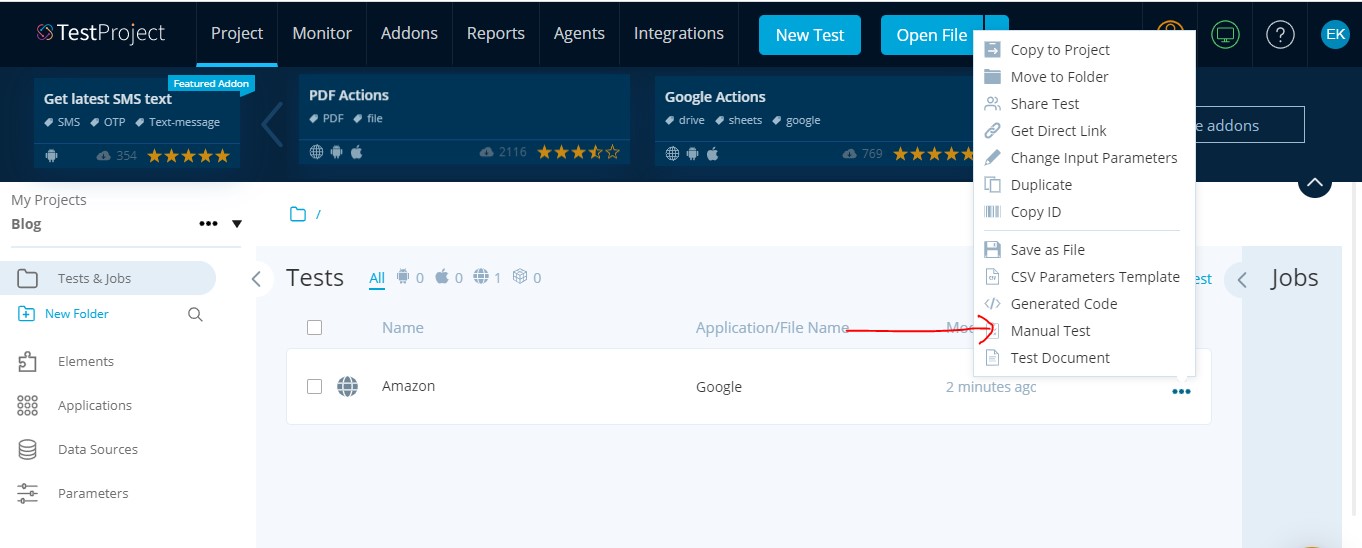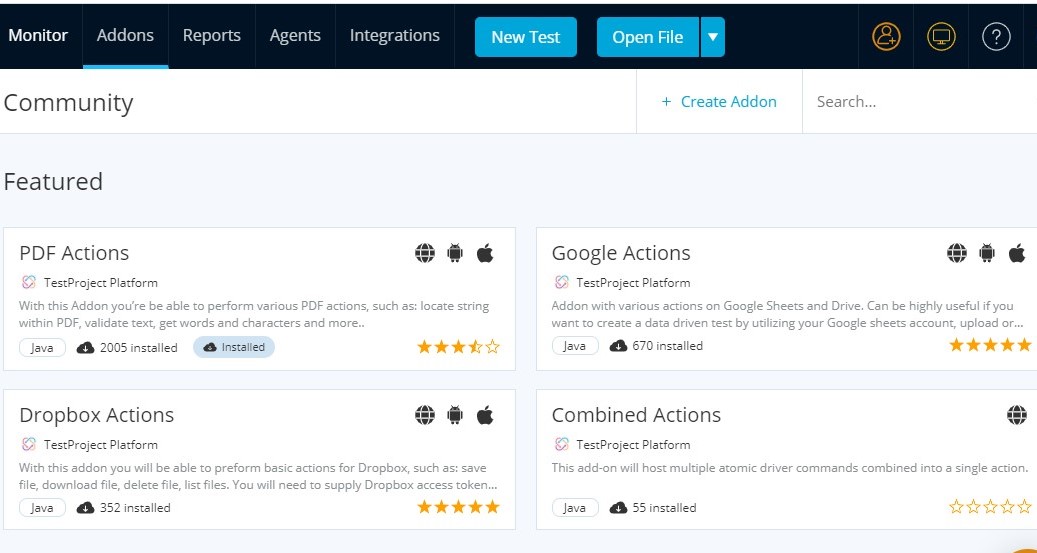 In the Add-ons section, you can see all the suggested add-ons that can be helpful for your tests. You can add those add-ons and extend your tests.