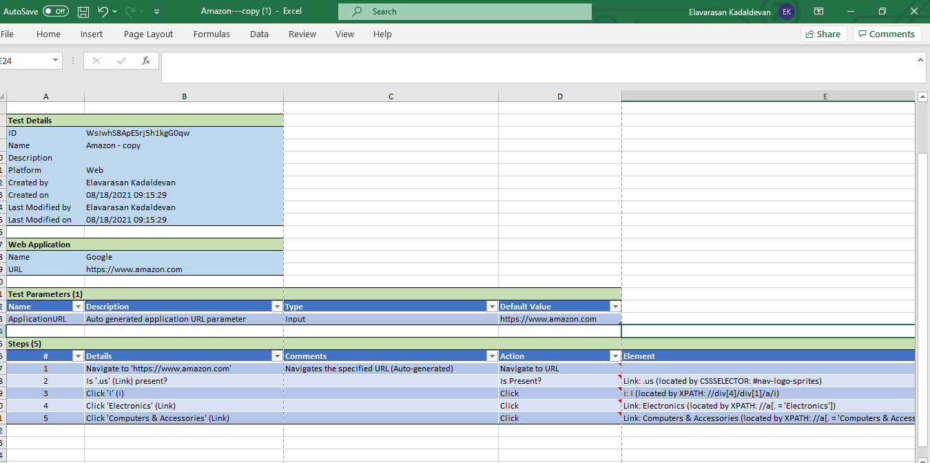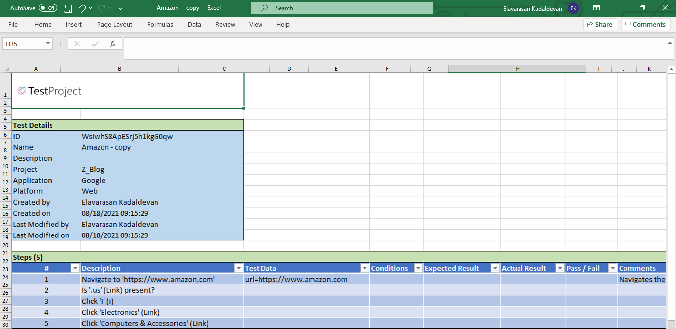 This feature is very useful and a great time saver. The user will just have to click on ‘Test Document’ and it will auto-generate very well-defined test documentation in Excel. Therefore, you can see all the test details, and the test steps details are documented perfectly. So, with a Test Project, you do not need to spend much time on documentation. If you have created an automated test, you can simply click on this option and generate the test document.