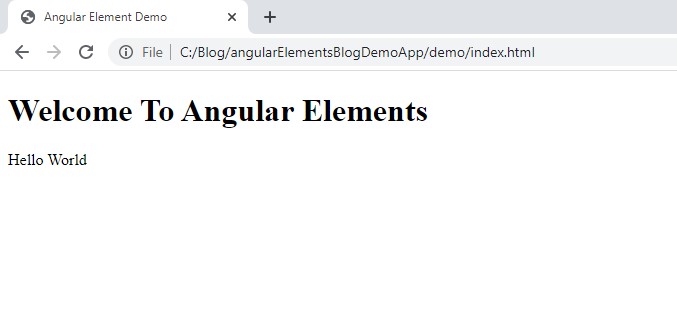 Finally, we can use our web component outside the Angular Application. For this, I created a sample HTML file and call the generated single demo-hello-world.js file inside that.