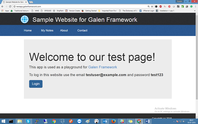 text contains “Sample Website for Galen Framework”
