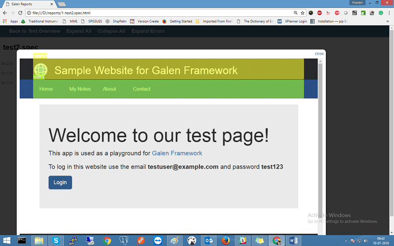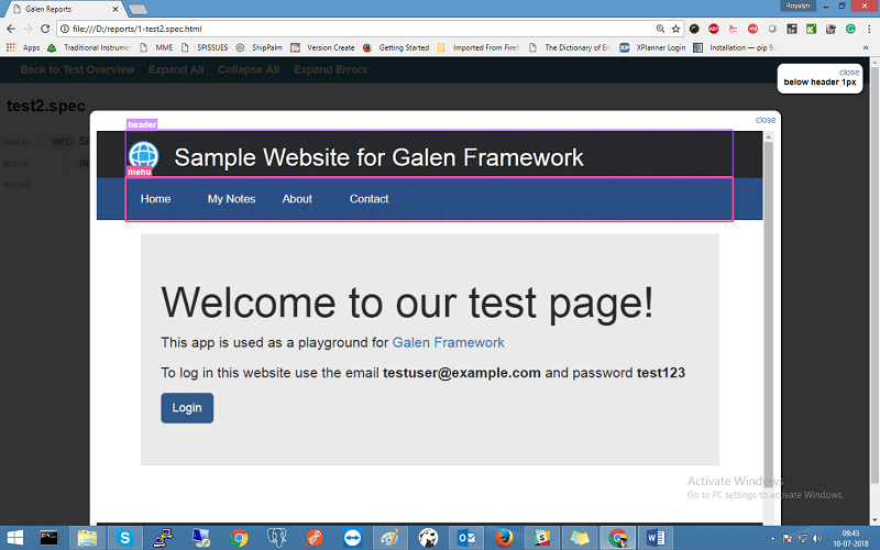 Given below is a simple example of layout testing with Galen Framework we have written the spec for sample website provided for Galen testing