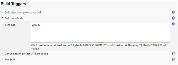 Based on our configuration, our testing scripts will be taken from Git Repository and will be executed on a daily basis.