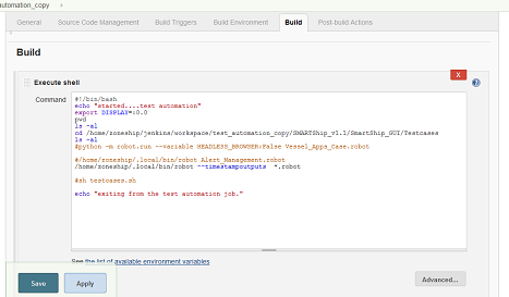 Build– Operations that we wish to perform can be configured in this section. Here I can give the command for executing the script.
