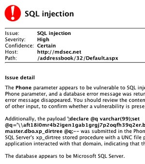 Burp Suite itself has more than 100+ predefined test conditions like SQL injection, cross-site scripting (XSS), Xpath injection and more and applies these conditions to code for every execution. Scanning can be performed at different levels of speed such as fast, normal and more. Using this tool, we can scan an entire application or a particular branch of a site, or an individual URL.