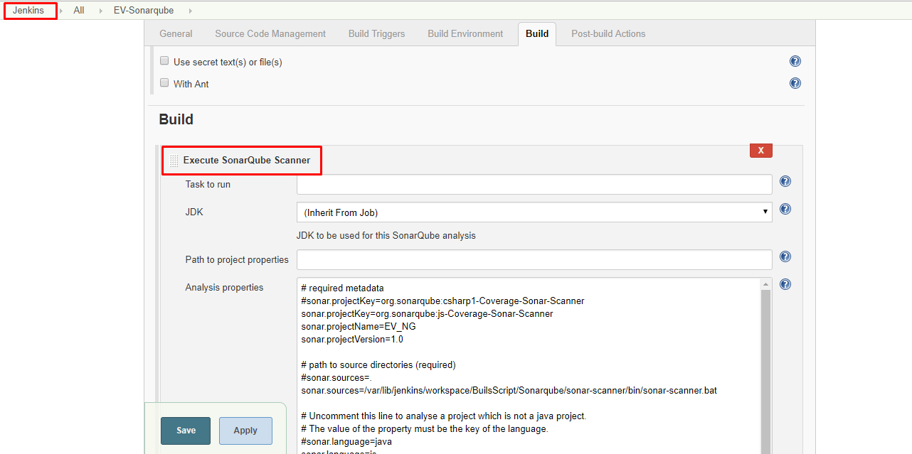 Jenkins has a separate plugin to perform sonar scanner that uploads the result to SonarQube server once the testing is done.